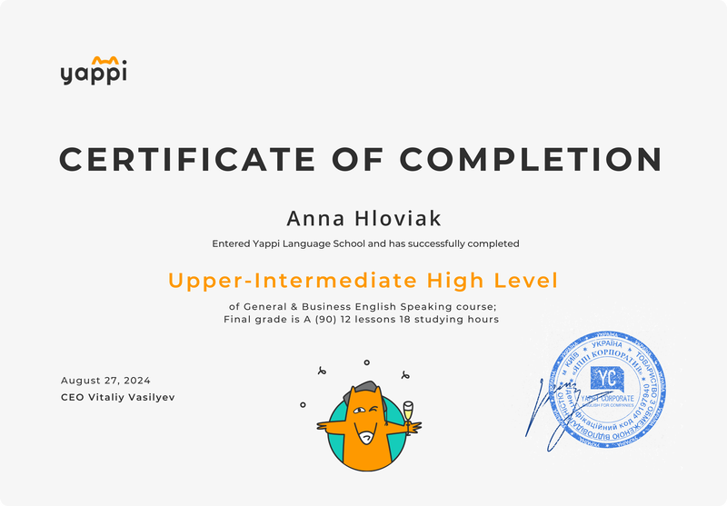 of General & Business English Speaking course;